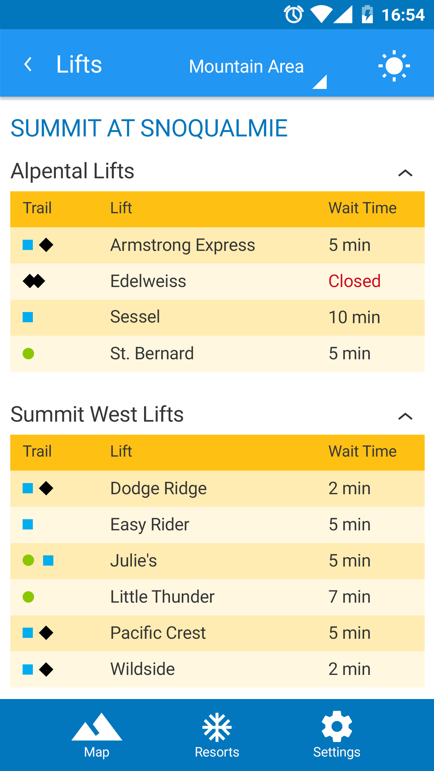 Ski More is a phone application for skiers and snowboarders. Its purpose is to show its users which chairlift has shorter line (and therefore, shorter wait time) on the current and nearby resorts. Ski More is an Android app, so I had to study Google Material Design guidelines.